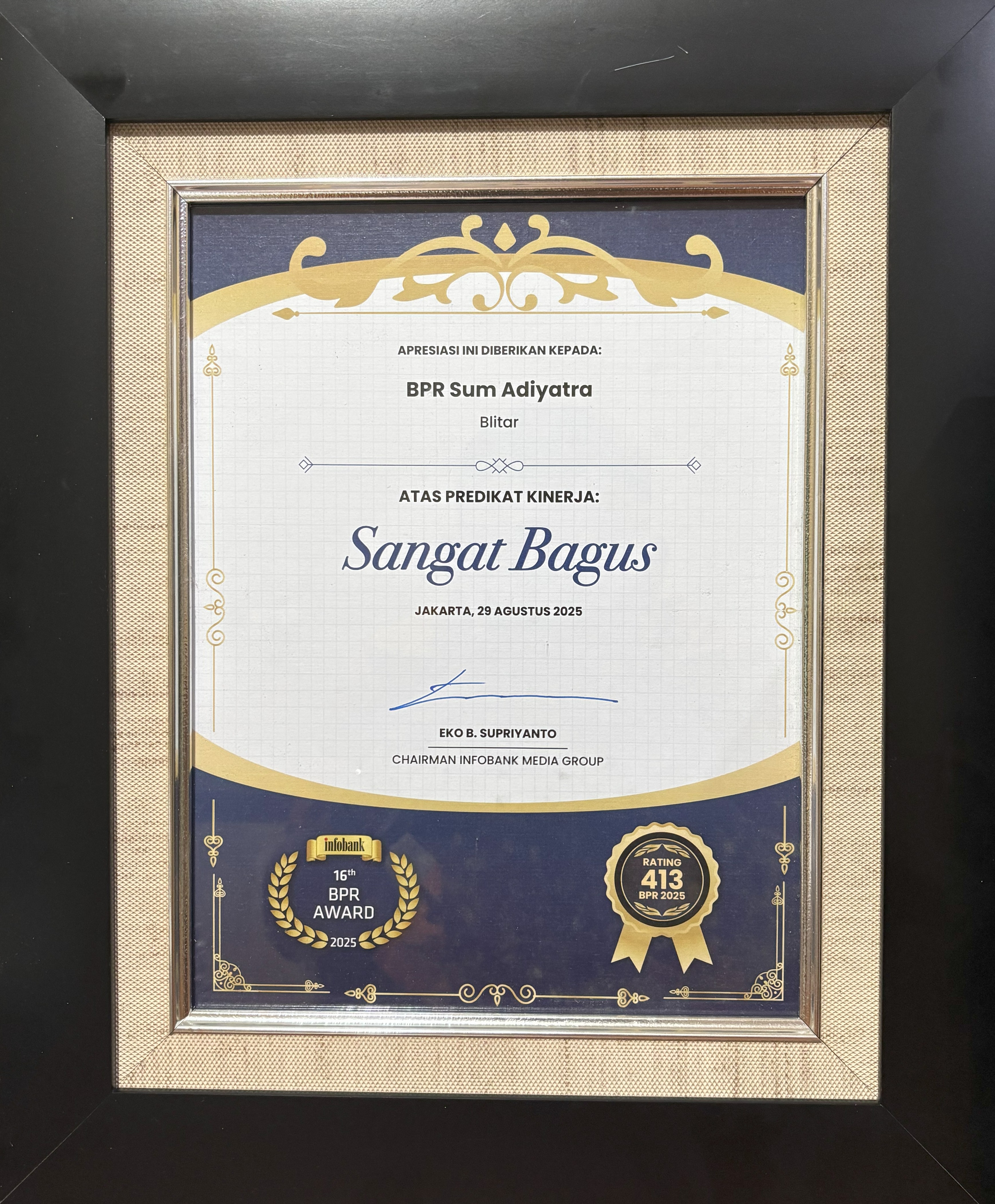Penghargaan ini diberikan oleh Infobank Media Group sebagai bentuk apresiasi atas konsistensi dan kinerja positif PT BPR Sum Adiyatra dalam menjaga kepercayaan masyarakat serta memberikan pelayanan terbaik, khususnya kepada masyarakat Blitar, Lawang, Tulungagung, dan sekitarnya.